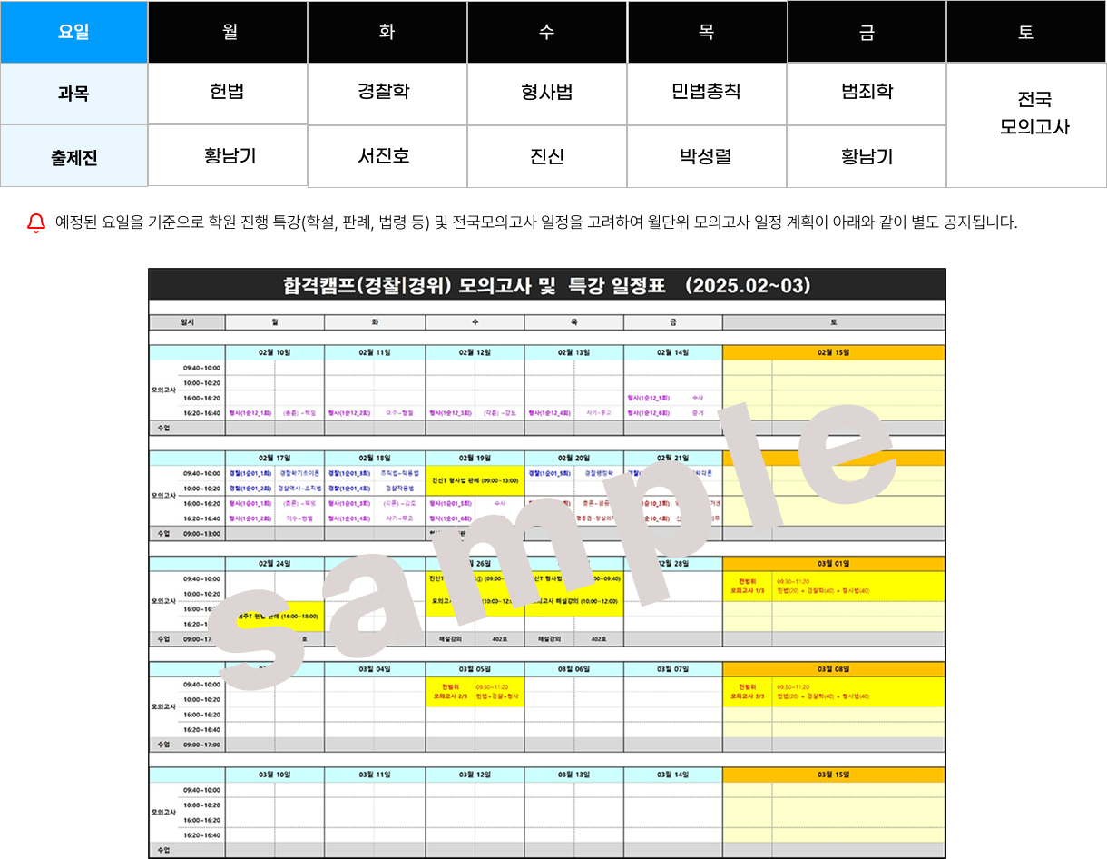 ③ 합격캠프는 평일에는 과목별 담임제(강의+시험+Q&A)로 운영되며,